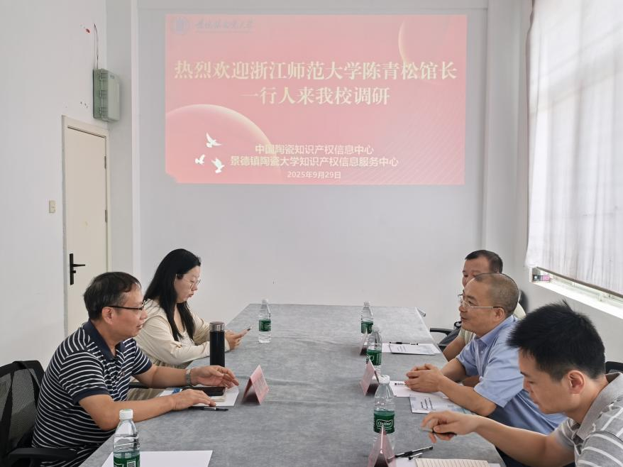 陈青松馆长对中心的热情接待与经验分享表示感谢,并对中心取得的建设成效给予了高度评价。他介绍了浙江师范大学在知识产权信息服务方面的相关情况,并表示景德镇陶瓷大学知识产权信息服务中心的建设经验与服务模式值得借鉴,希望未来双方能加强沟通,相互学习,共同进步。