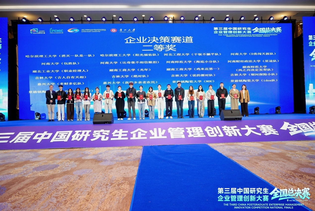 (文/周婧)本网讯 在11月7日至9日于贵阳举办的第三届中国研究生企业管理创新大赛全国总决赛中,我校2023级图书情报硕士专业研究生倪想、彭汉平组成的“NOU”团队,凭借出色的数据分析与战略决策能力,在企业决策赛道中荣获全国二等奖,展现了我校图情专硕研究生在跨学科竞赛中的扎实素养与创新实力。